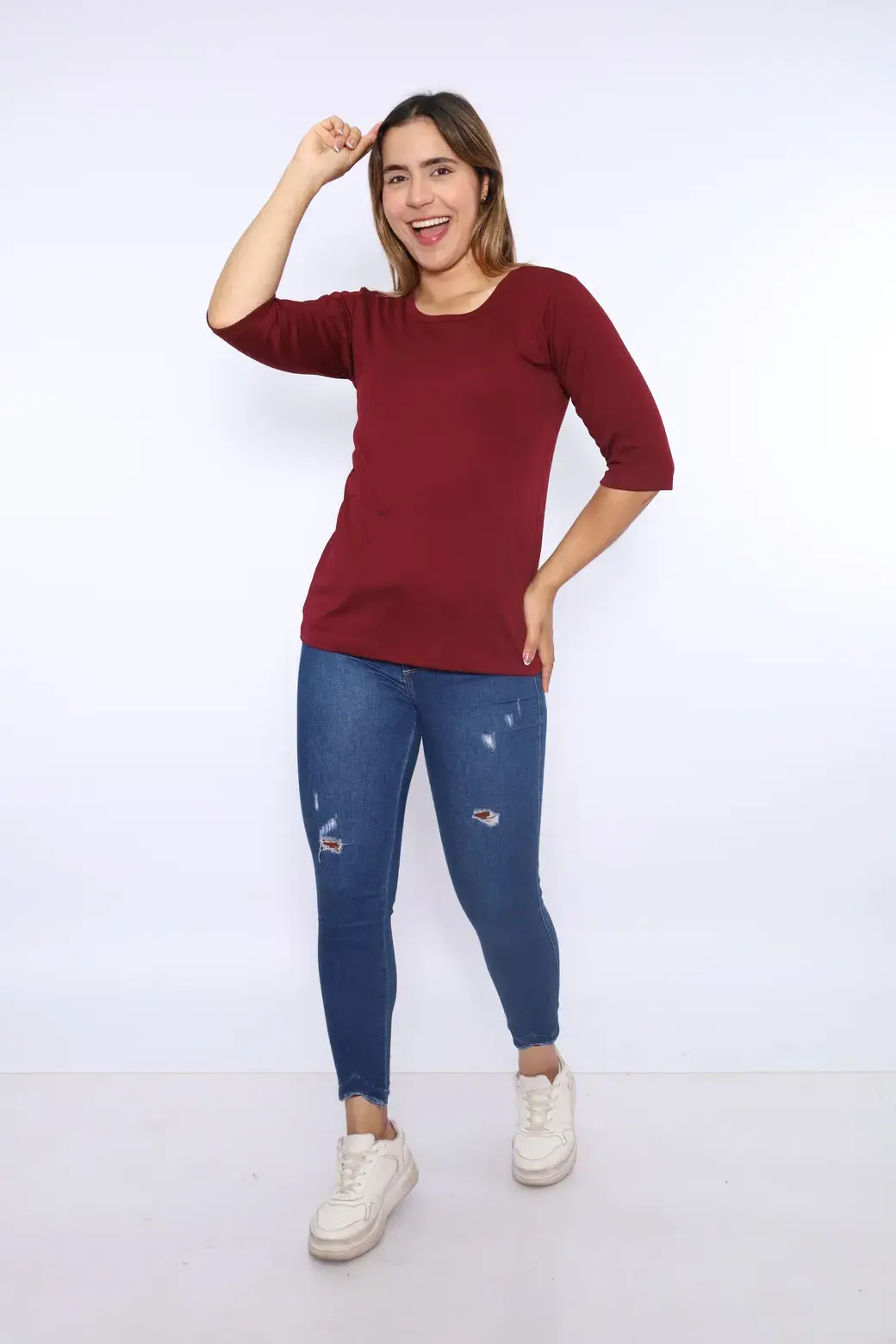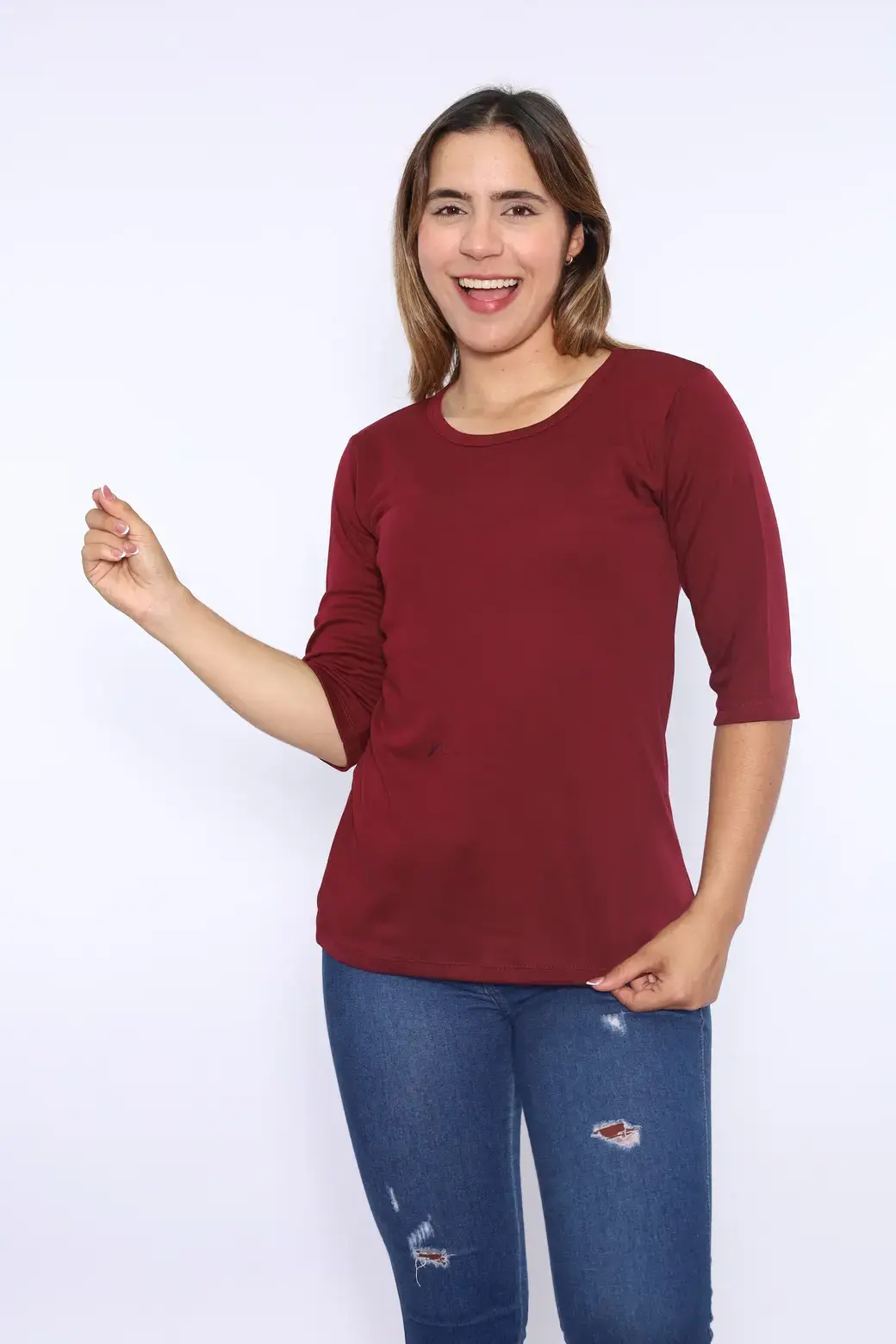 Polo cuello redondo color lacre