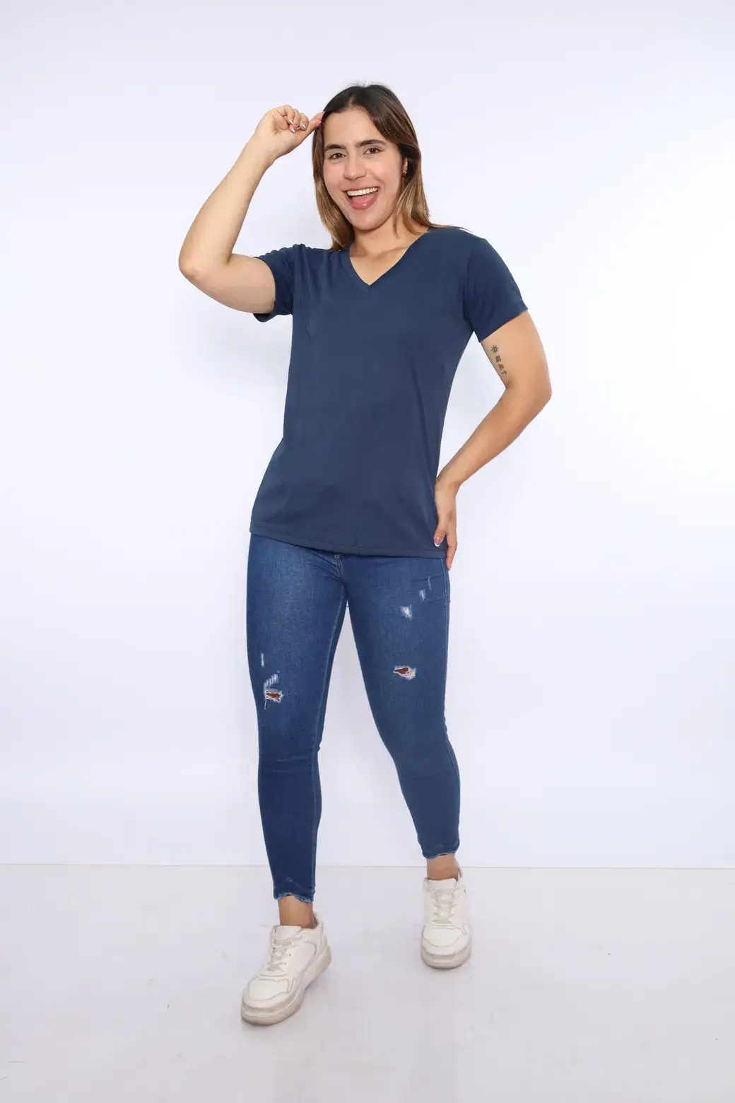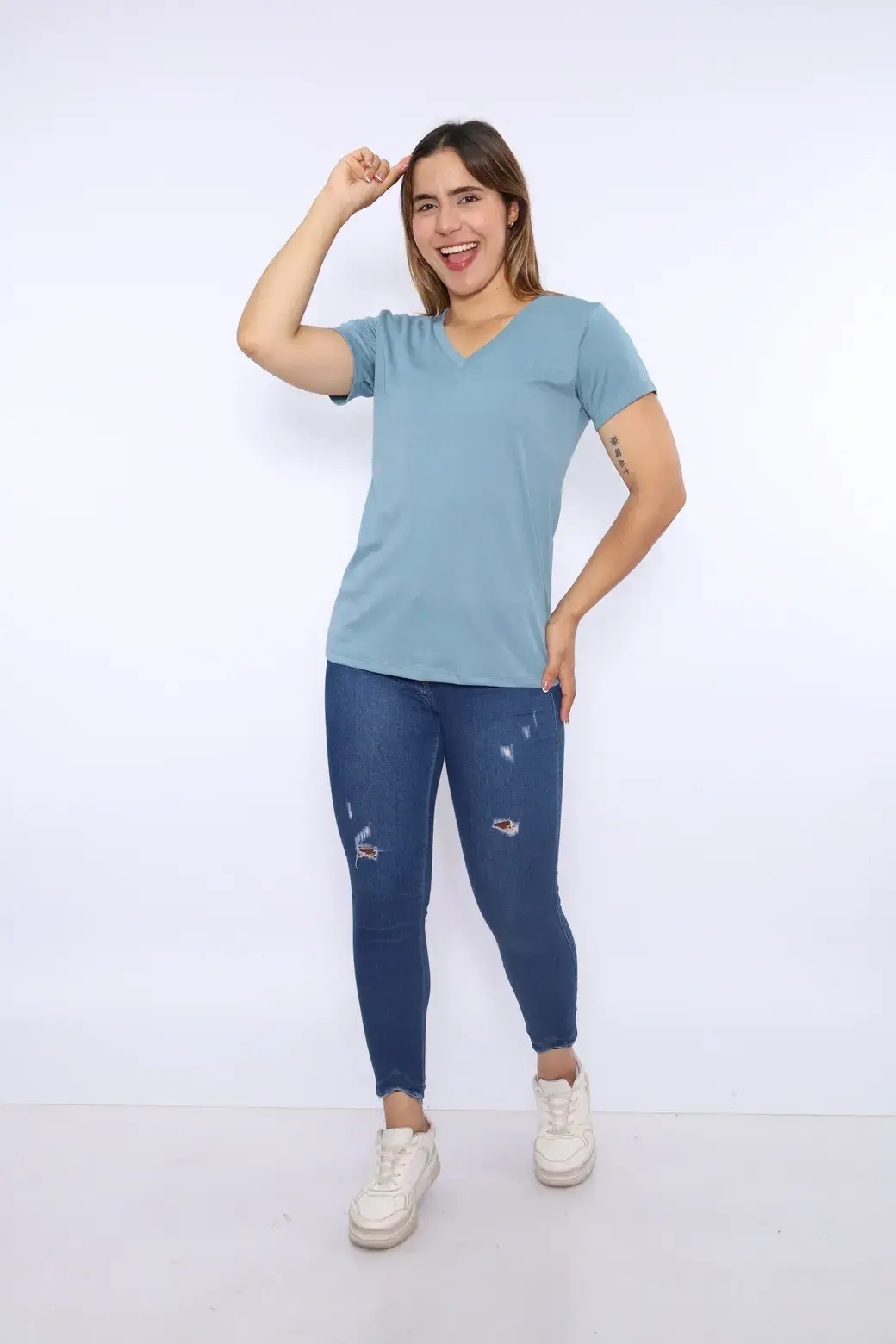 ML cuello V color azul acero