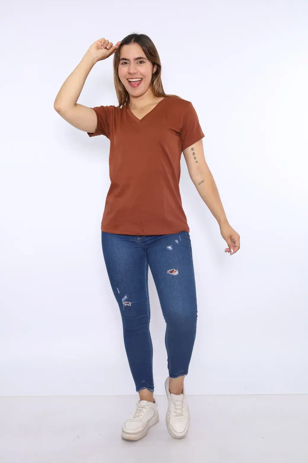 ML cuello V color marrón