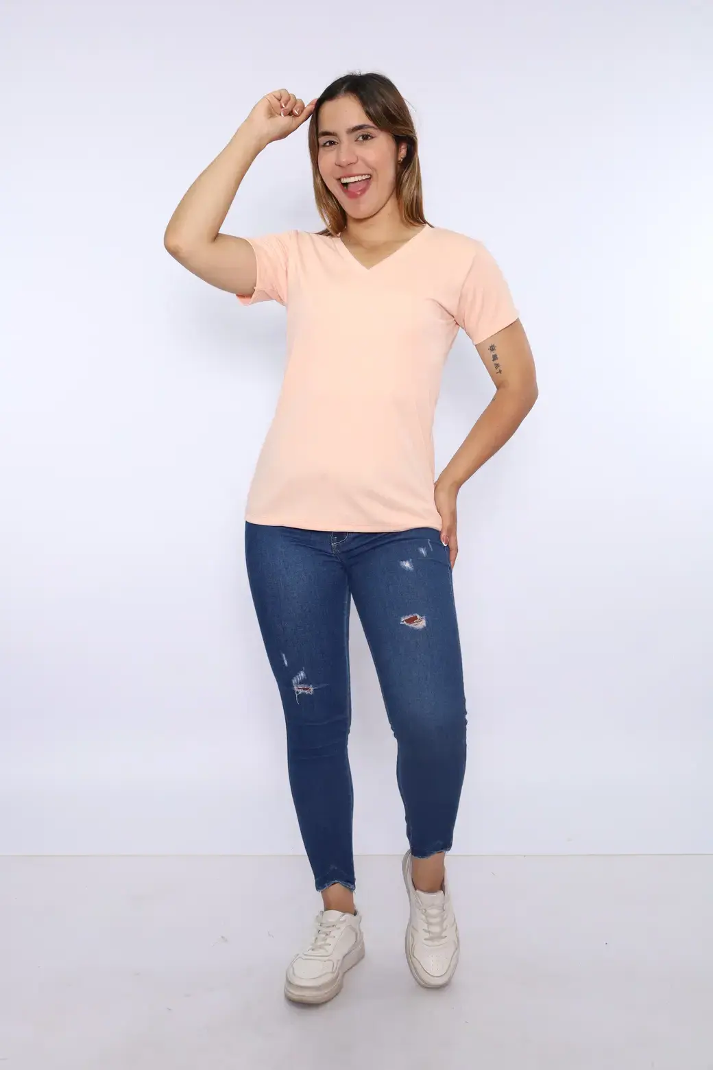 Cuello V color melón