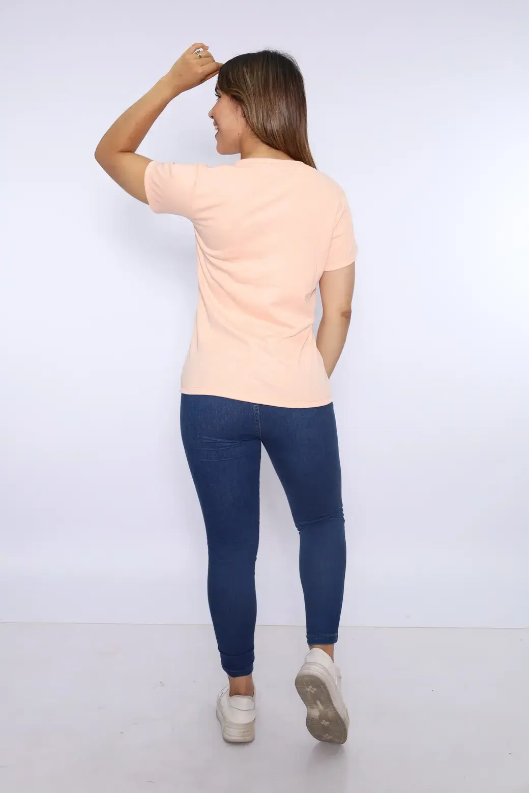 Polo cuello V color melón