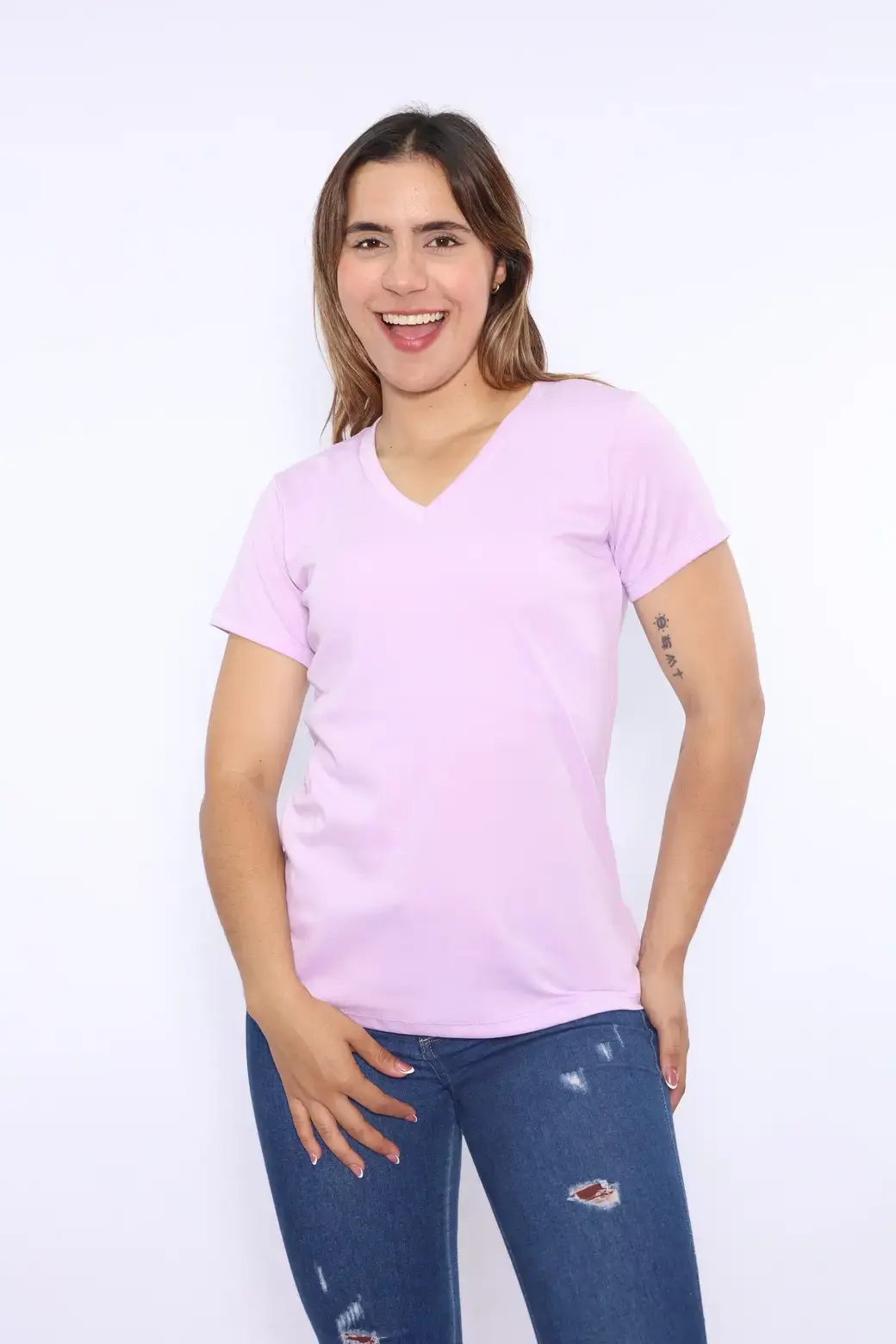 Polo cuello V color lila bebé