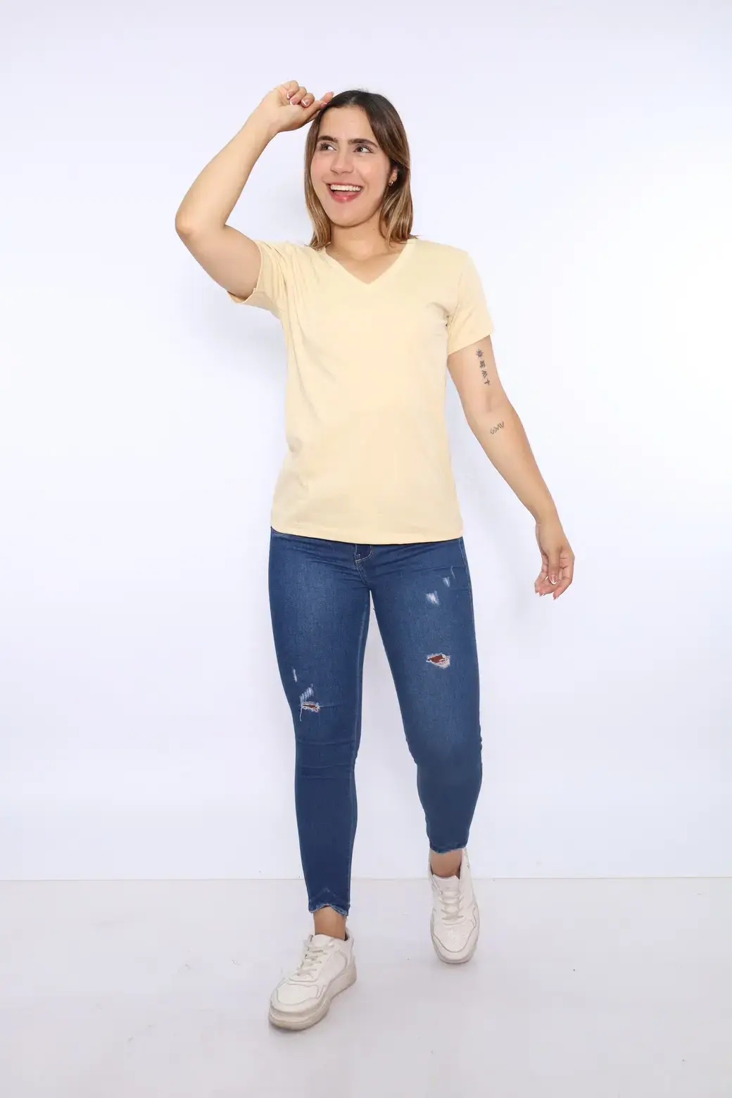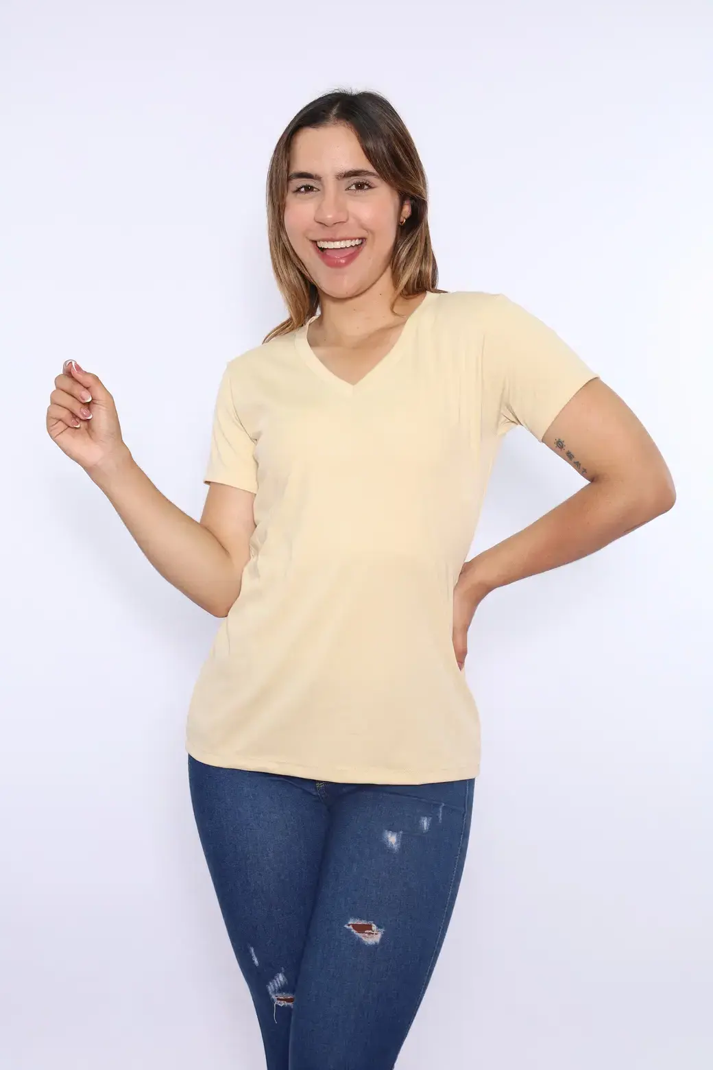 Polo crema cuello V