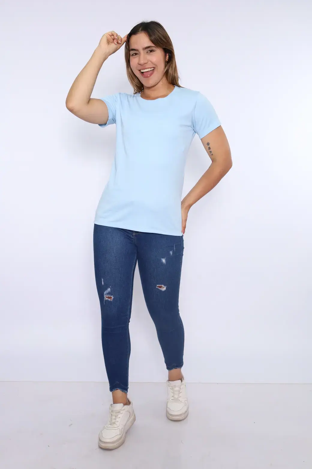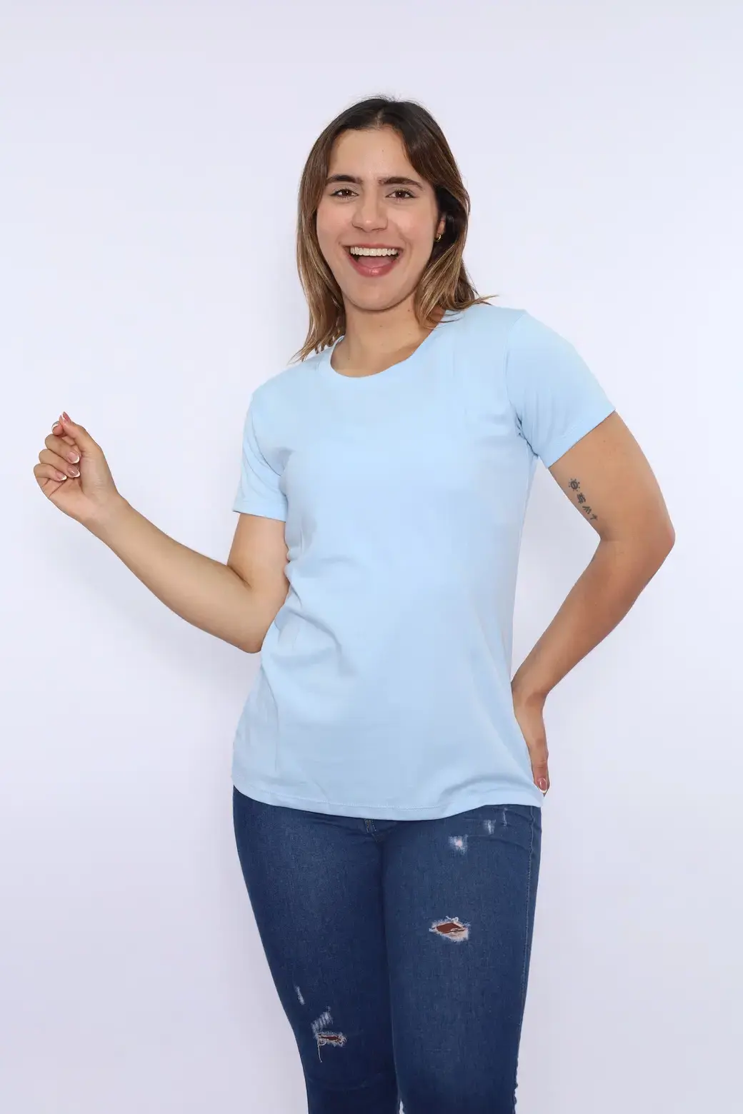 Polo celeste cuello Redondo