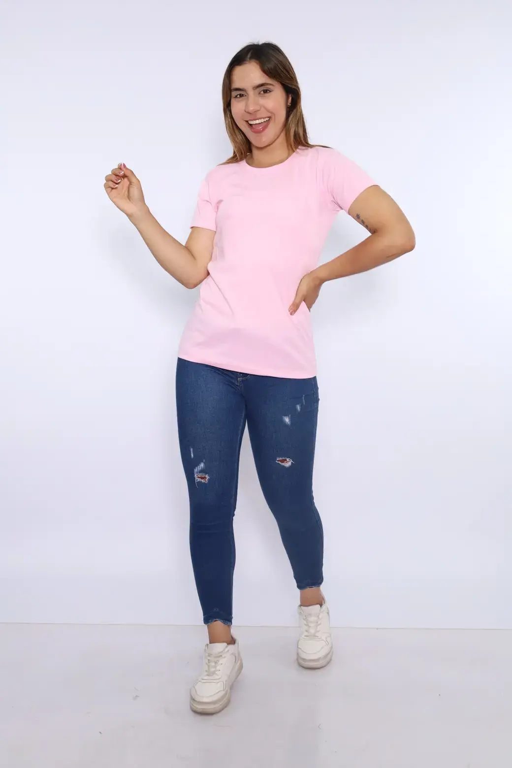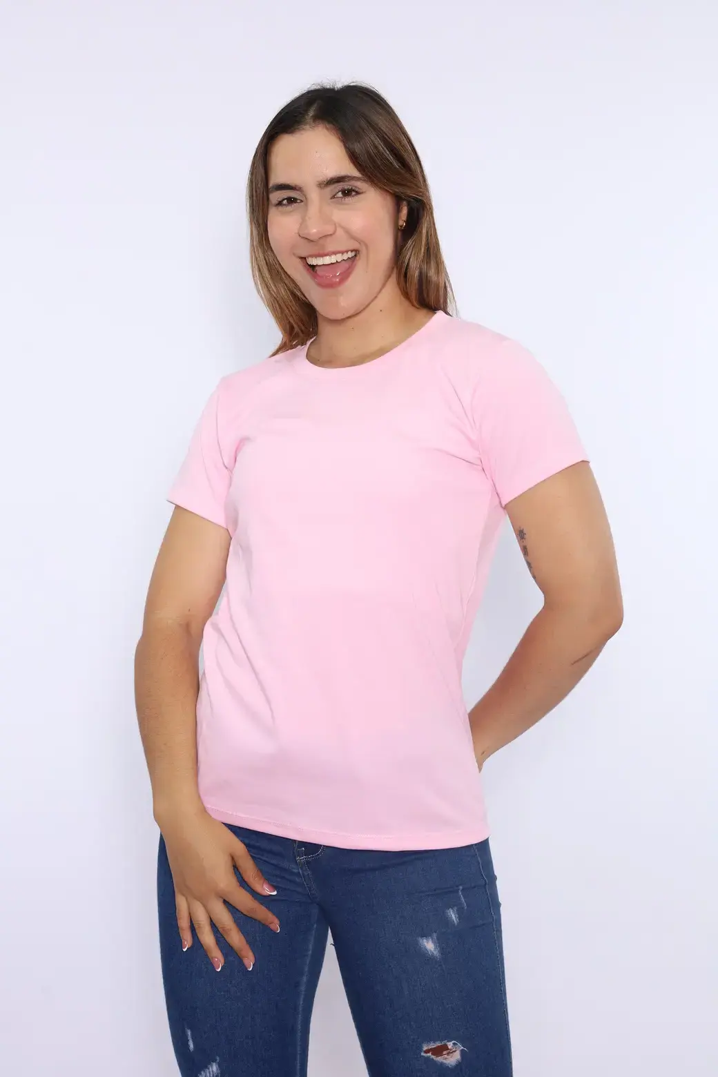 Cuello redondo color rosa