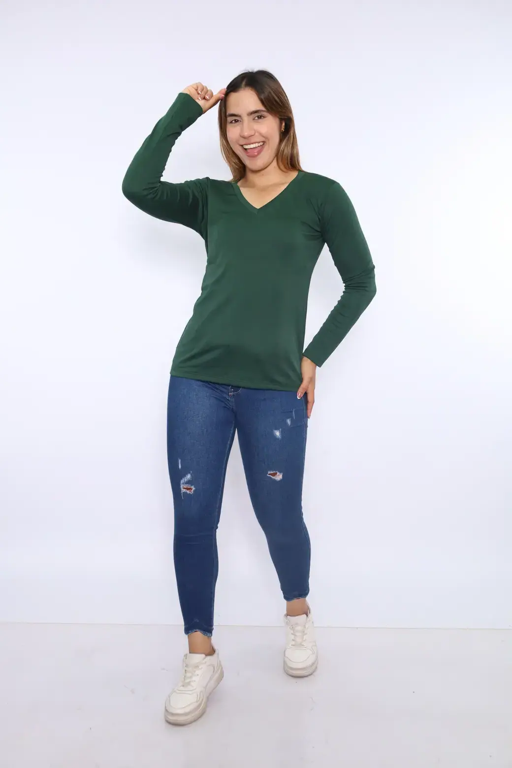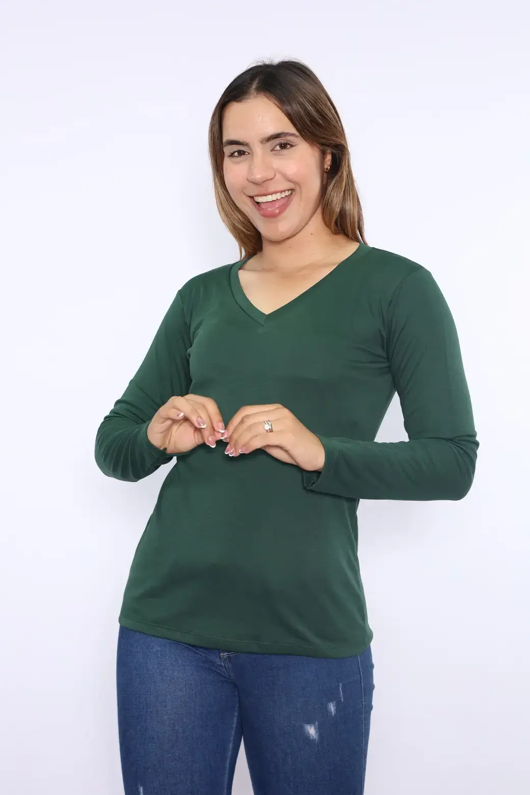 ML cuello V color verde botella